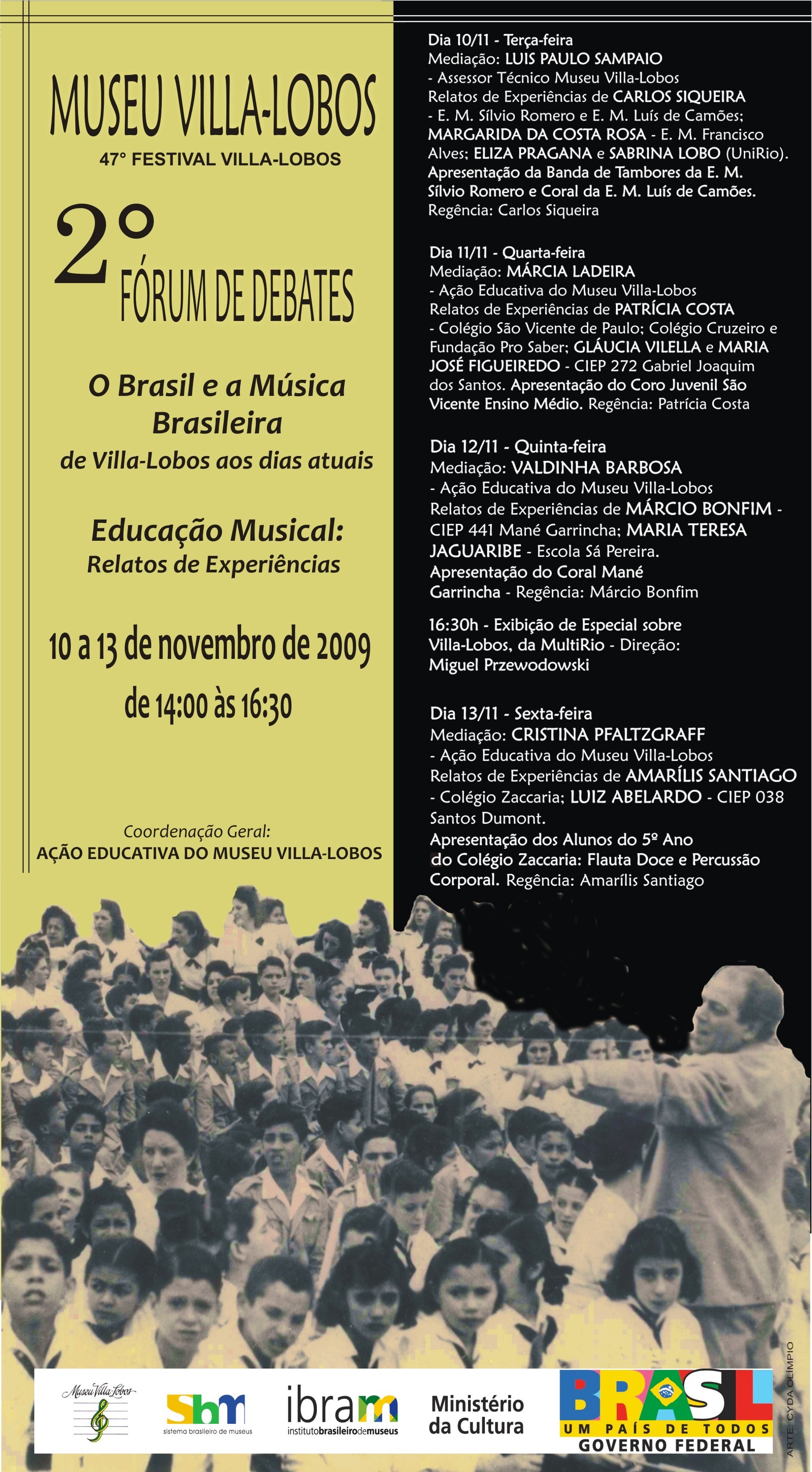 04/11/2009 - Em anexo, a programação do II Fórum de Debates no Museu Villa Lobos.